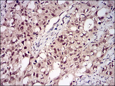 - Immunohistochemical analysis of paraffin-embedded human cervical cancer tissues using PPP1CB mouse mAb with DAB staining.