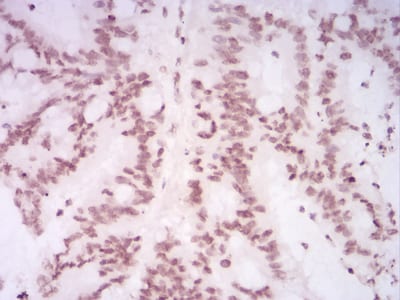 - Immunohistochemical analysis of paraffin-embedded human colon cancer tissues using HIST2H4A(20Me) mouse mAb with DAB staining.
