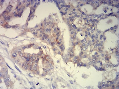 - Immunohistochemical analysis of paraffin-embedded human ovarian cancer tissues using CD239 mouse mAb with DAB staining.