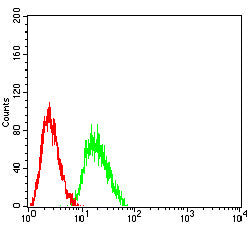 - Flow cytometric analysis of Jurkat cells using SERPINA mouse mAb (green) and negative control (red).